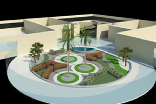 - Digital view of Central courtyard ,a green space provided inside the working atmosphere.